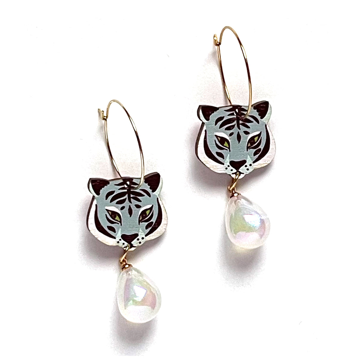 The pattern is digitally printed on Finnish birch plywood and then laser cut. The print is on both sides of the earring.