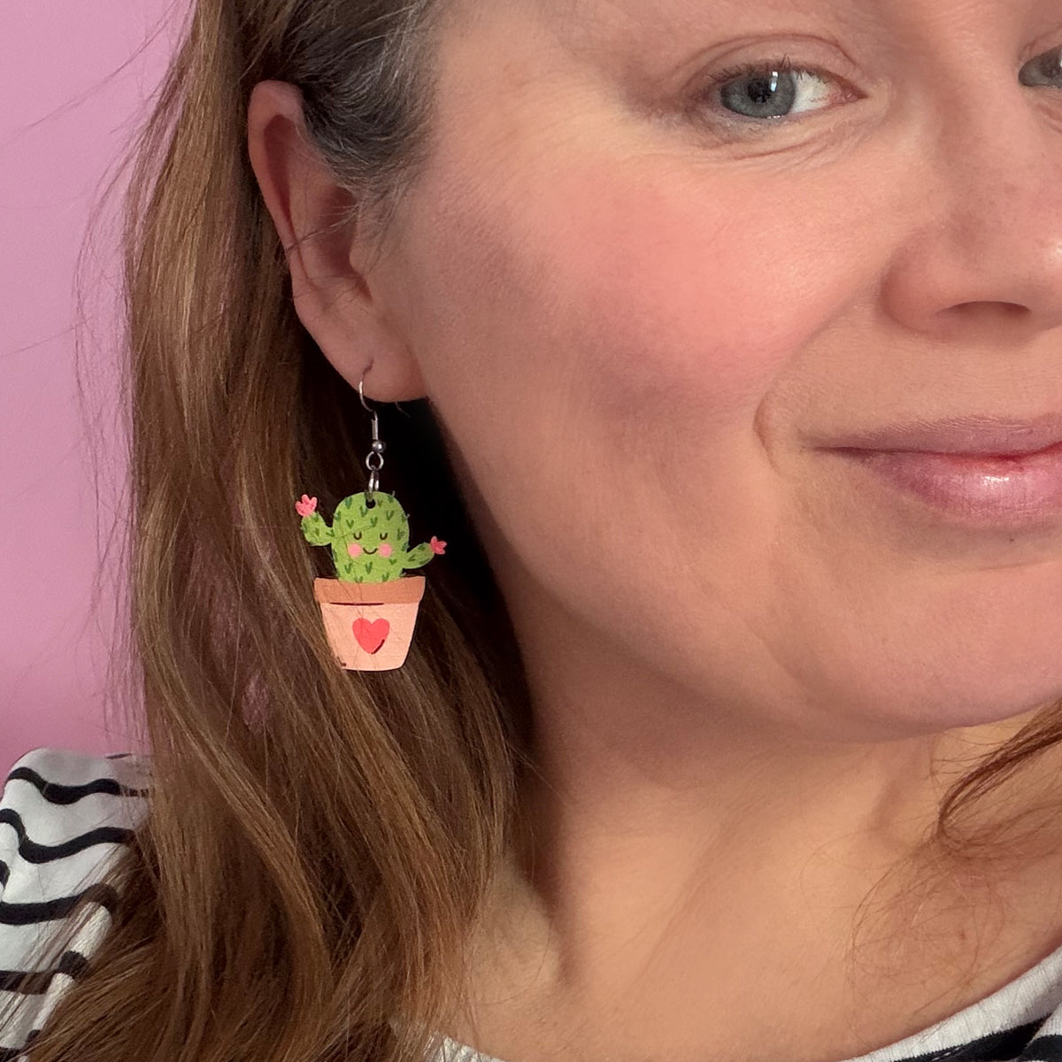 The pattern is digitally printed on Finnish birch plywood and then laser cut. The print is on both sides of the earring.
