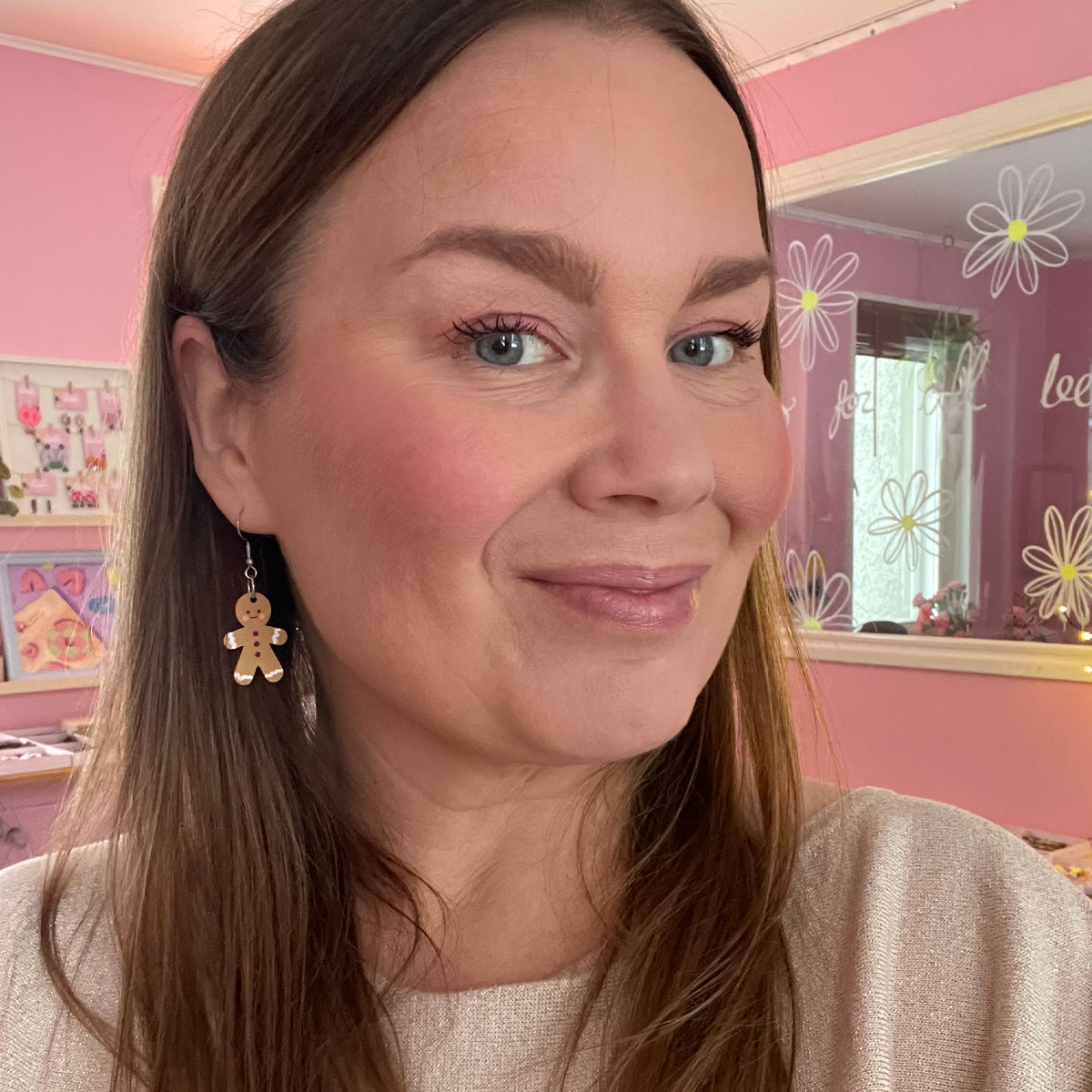 The pattern is digitally printed on Finnish birch plywood and then laser cut. The print is on both sides of the earring.